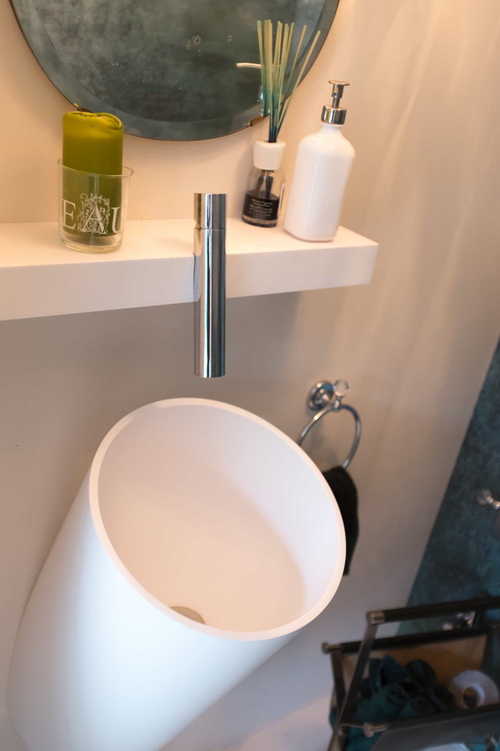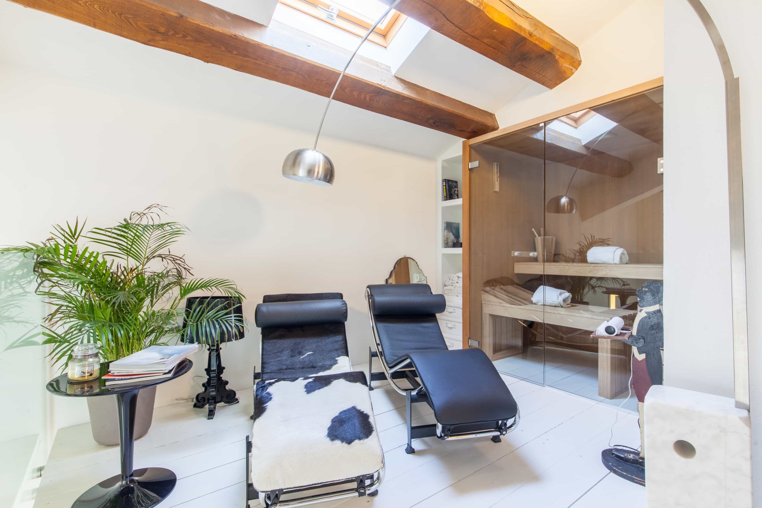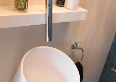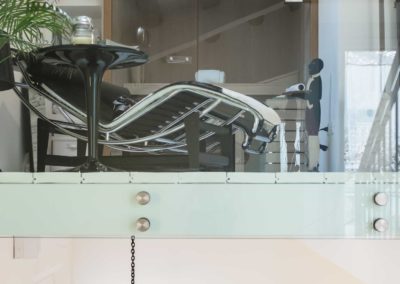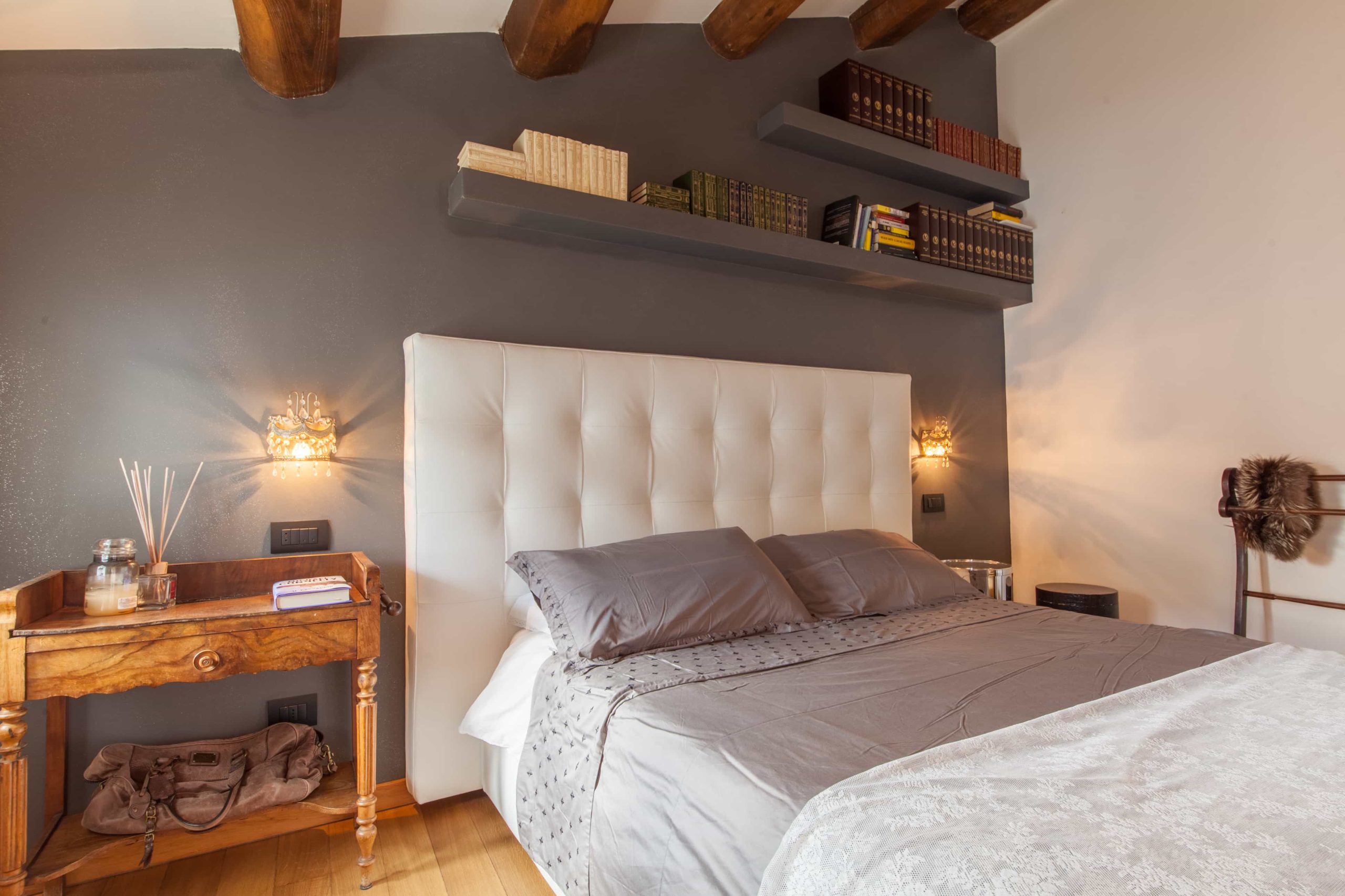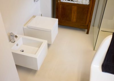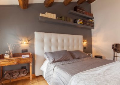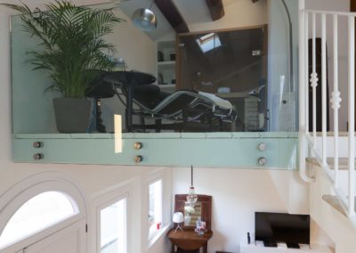 Il piano superiore è stato ampliato con un soppalco per il relax e una zona studio. I bagni del primo piano sono stati demoliti e ricostruiti da zero, eliminando l’ingombrante vasca a favore di una doccia a due posti in vetro.