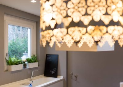 La ricerca di oggetti che fungessero anche da complementi d’arredo funzionali è stata molto impegnativa ma di grandissima soddisfazione. Alcuni Old-Generation regalano un tocco romantico e vissuto a tutto l’ambiente, e le carte da parati, oggi di moda e immancabili in tutte le ristrutturazioni, sono caratterizzate da soggetti soft in grado di amalgamare tutti gli ambienti e rilassare lo sguardo.